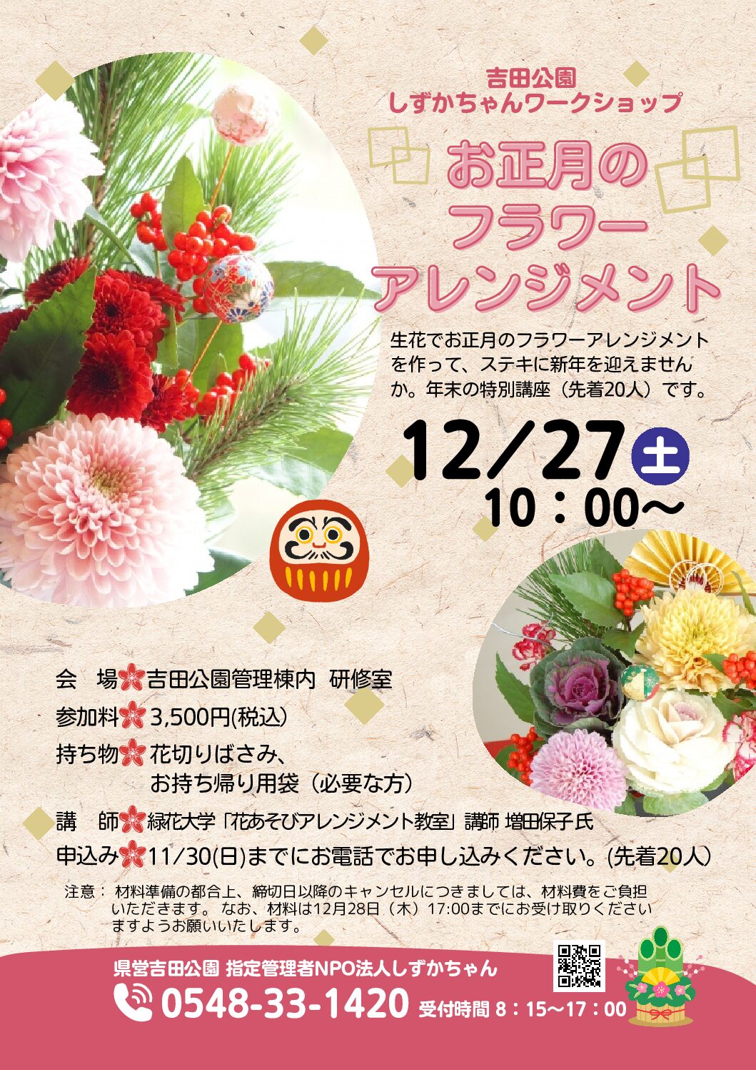 『お正月のフラワーアレンジメント講座』参加者募集!